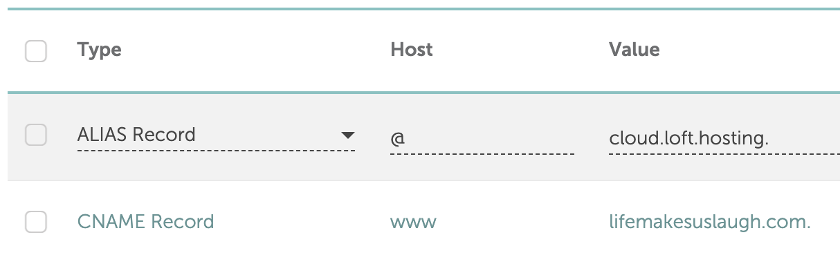 ALIAS @ cloud.loft.hosting.CNAME www my-domain.com.